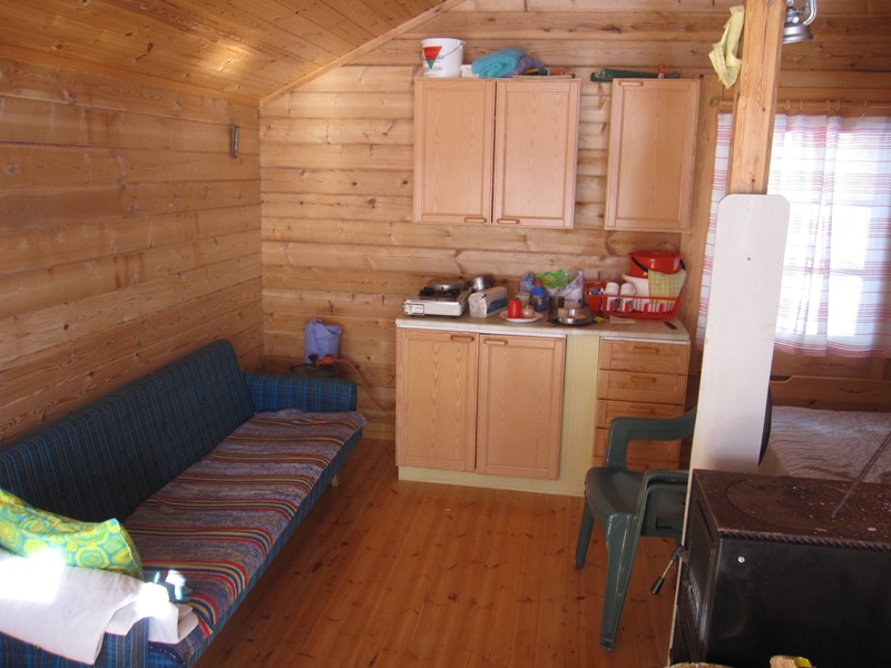 Yksittäinen kelomökki, valmistunut 2012, olohuone, keittiö, yläkerta 2